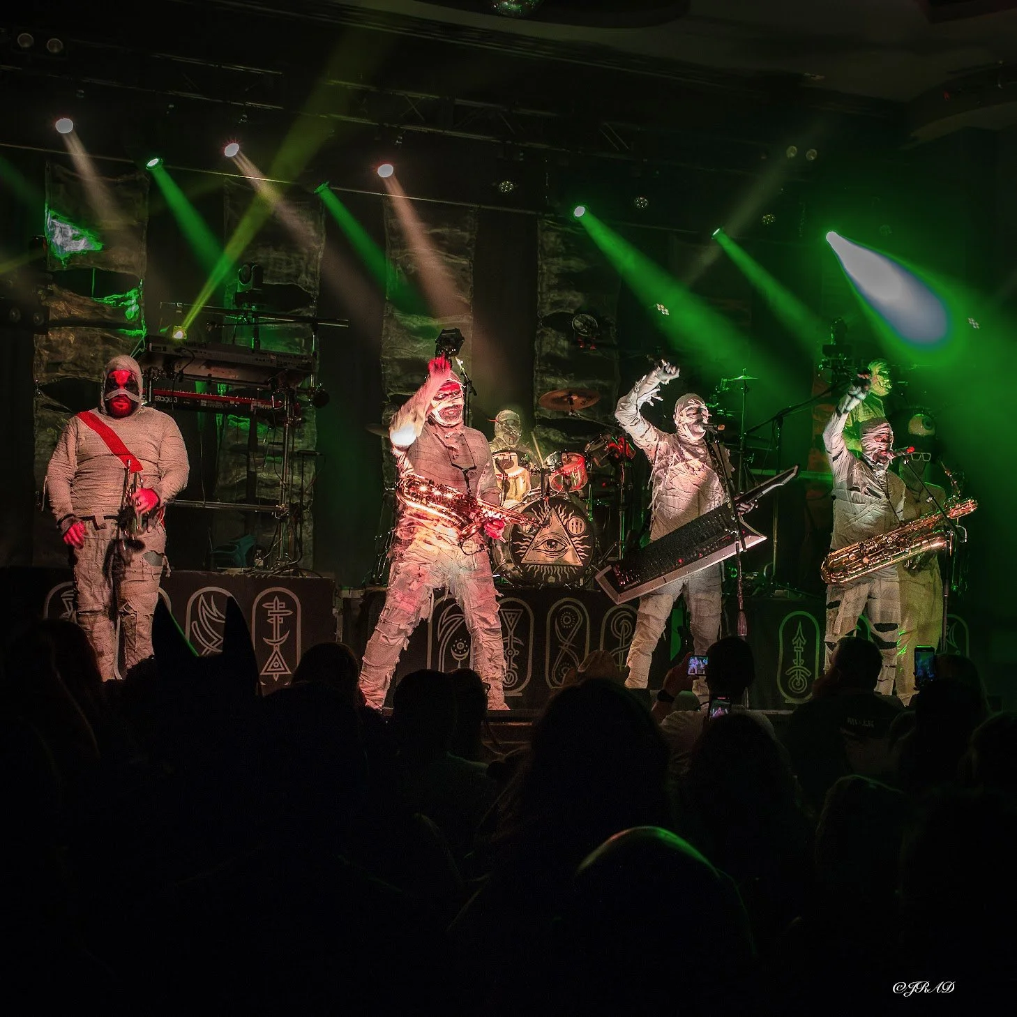 Headliners Here Come the Mummies, an eight-piece funk-rock band from Nashville, took the stage with their signature theatrical flair. Known for their mummy personas and anonymous identities—Mummy Cass, Eddie Mummy, K.W. Tut, Spaz, The Pole!, Midnight Mummy, Dr. Yo, Highlander, and HPOD (High Priest of Death)—the band delivered a performance that was equal parts concert and spectacle. Their unique blend of funk, rock, and jazz, perfect for fans of live funk music events, kept the audience dancing all night.